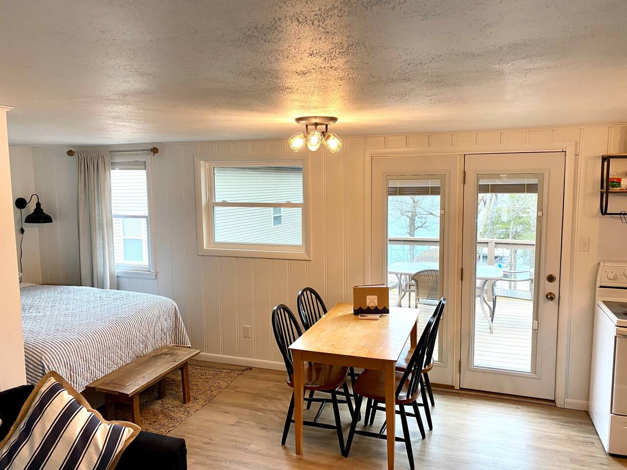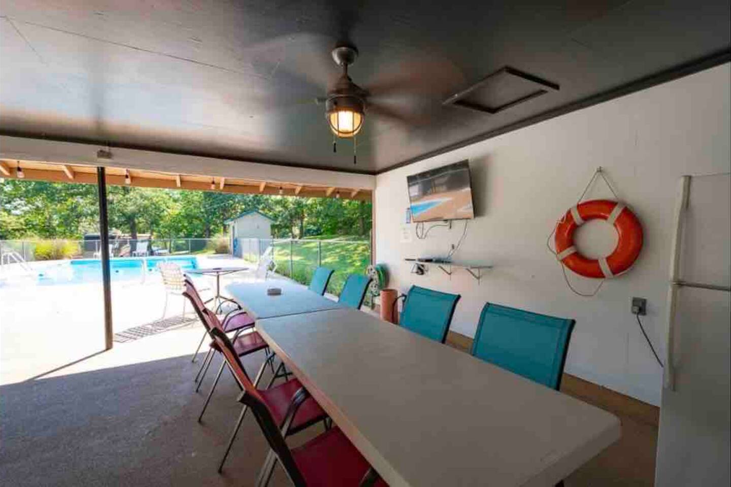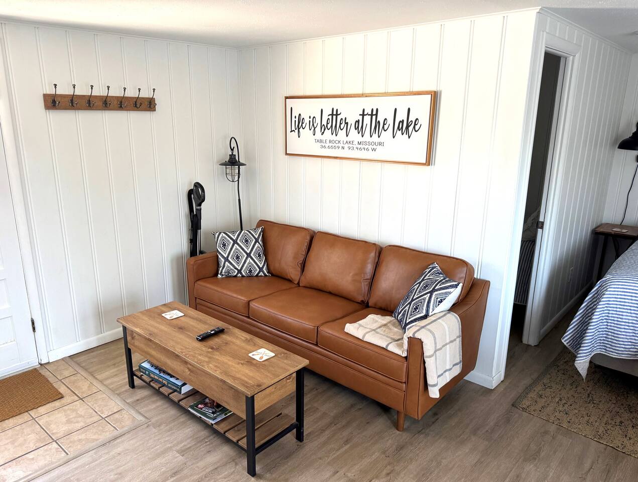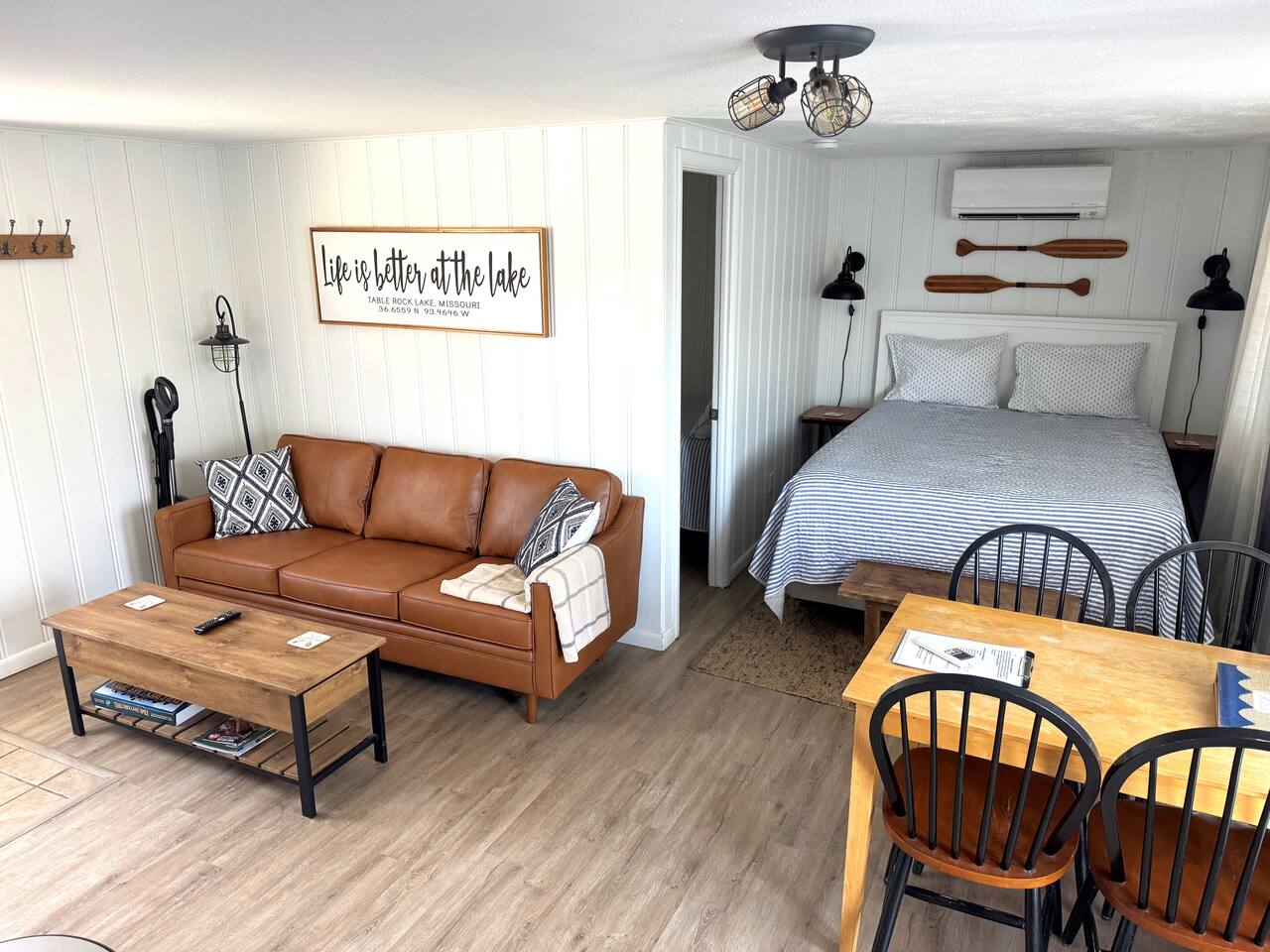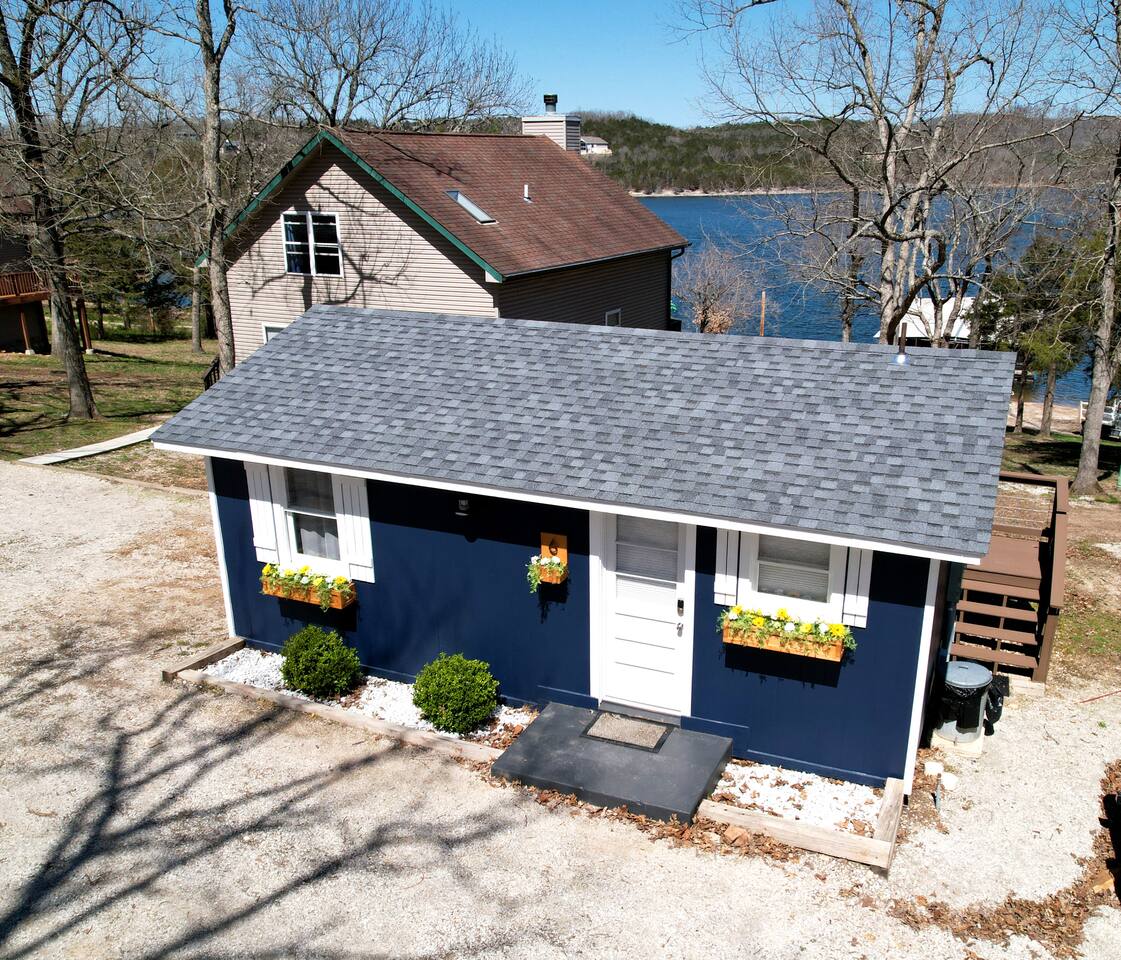 Located at the former Kings Cove Resort, this charming cabin offers access to a variety of amenities that are just steps from the front door. Guests can enjoy an in-ground saltwater pool (open Memorial Day through Labor Day), a pool table, a fire pit, and a children’s play area, making it a perfect spot for relaxation and fun. Inside, the cozy cabin is thoughtfully equipped with everything you need for a peaceful getaway. The main living area features a comfortable queen-size bed, a couch, a smart TV, and a dining table with seating for four. The bedroom offers an additional full-size bed, providing extra sleeping space. The kitchen is well-appointed with a full-size electric stove/range, refrigerator, cookware, utensils, a coffee pot, and even a crock pot for your convenience. Step out the back door and take in the stunning views of Table Rock Lake. The deck, complete with a table and four chairs, is the ideal setting to enjoy your morning coffee or a meal while soaking in the serene surroundings. Just below the deck, you’ll find a Weber kettle grill with grilling tools provided, perfect for a barbecue with a view. Looking for water access? There is a public boat launch less than 10 minutes away (3.8 miles) at Aunt's Creek Park. The closest boat rental and/or slip rental is located at Port of Kimberling Marina which is located 12 minutes away (6.1 miles). PLEASE NOTE: Per U.S. Army Corps of Engineers rules at Table Rock Lake, we are unable to rent a boat slip. Interested in other activities? Get to the ‘Branson strip’ within 25 minutes for food, entertainment, shopping, putt putt golf, go carts, etc. Distances to some top attractions include: Silver Dollar City is 17 minutes away (11 miles). Tanger Outlets- 29 minutes (17.2 miles). Branson Landing (shopping/food)- 33 minutes (24.1 miles) Dolly Parton’s Stampede- 30 minutes (18 miles) Titanic Museum- 27 minutes (16.1 miles) White Water park- 25 minutes (15.5 miles) Dogwood Canyon Nature Park- 27 minutes (16.5 miles) Top of the Rock- 44 minutes (29 miles) This cabin is close enough to Branson to enjoy all that it has to offer, but also out far enough to enjoy Table Rock Lake.